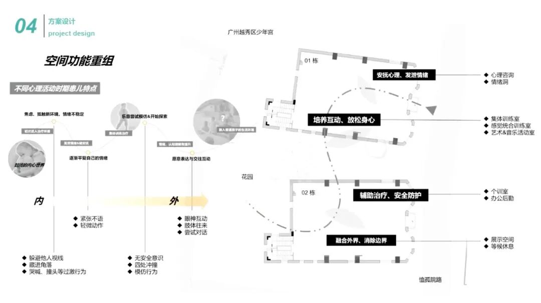 王萍老师:自闭症是一个很敏感的问题。空间设计只能起到辅助作用,空间中需更多考虑疗愈功能的互动空间。